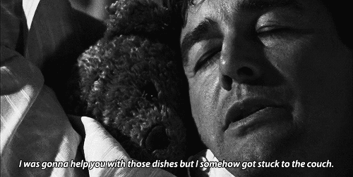 Solid Gif usage here, folks. Looks like Tim_Riggins came in hard with relevant content on this one. The Gif shows a black and white clip from what I assume to be a classic movie. In the gif the actor is seen with his eyes closed, a sleepy look on his face, as he’s nestled in a pillow mouthing the words, “I was gonna help you with those dishes but I somehow got stuck on the couch” This really drives home some of the points made my Domesticated_Redneck on how to deal with punishing men in long term relationships because we really don’t give a fuck about snoozing on the couch watching Rick & Morty along South Park all night. Hell I may even go to the fridge after a late night bowlski for a snack if I’m on the couch. This Riggins kid really came through big after completing his first full year on PGP yesterday for a possible top Gif of the week.